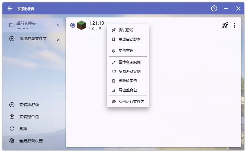 在 HMCL 中右键做好的客户端版本,选择