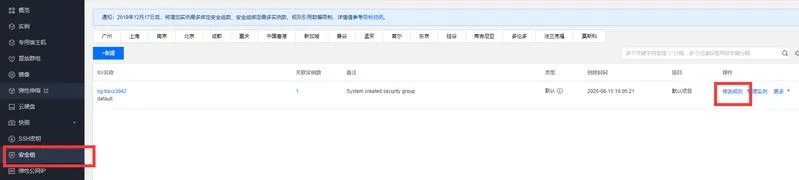 回到控制台面板,我们需要开放一些通道让面板通过,选择安全组