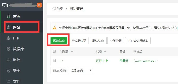 等待安装完成后,选择网站,点击添加网站